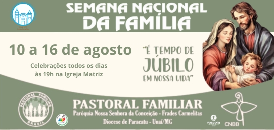 Celebração da Missa e Bênção para Mães e Crianças – Semana Nacional da Família No dia 12 de agosto de 2025, às 19h, a comunidade paroquial se reuniu na Igreja Matriz para celebrar um momento especial em honra à Semana Nacional da Família. A…
